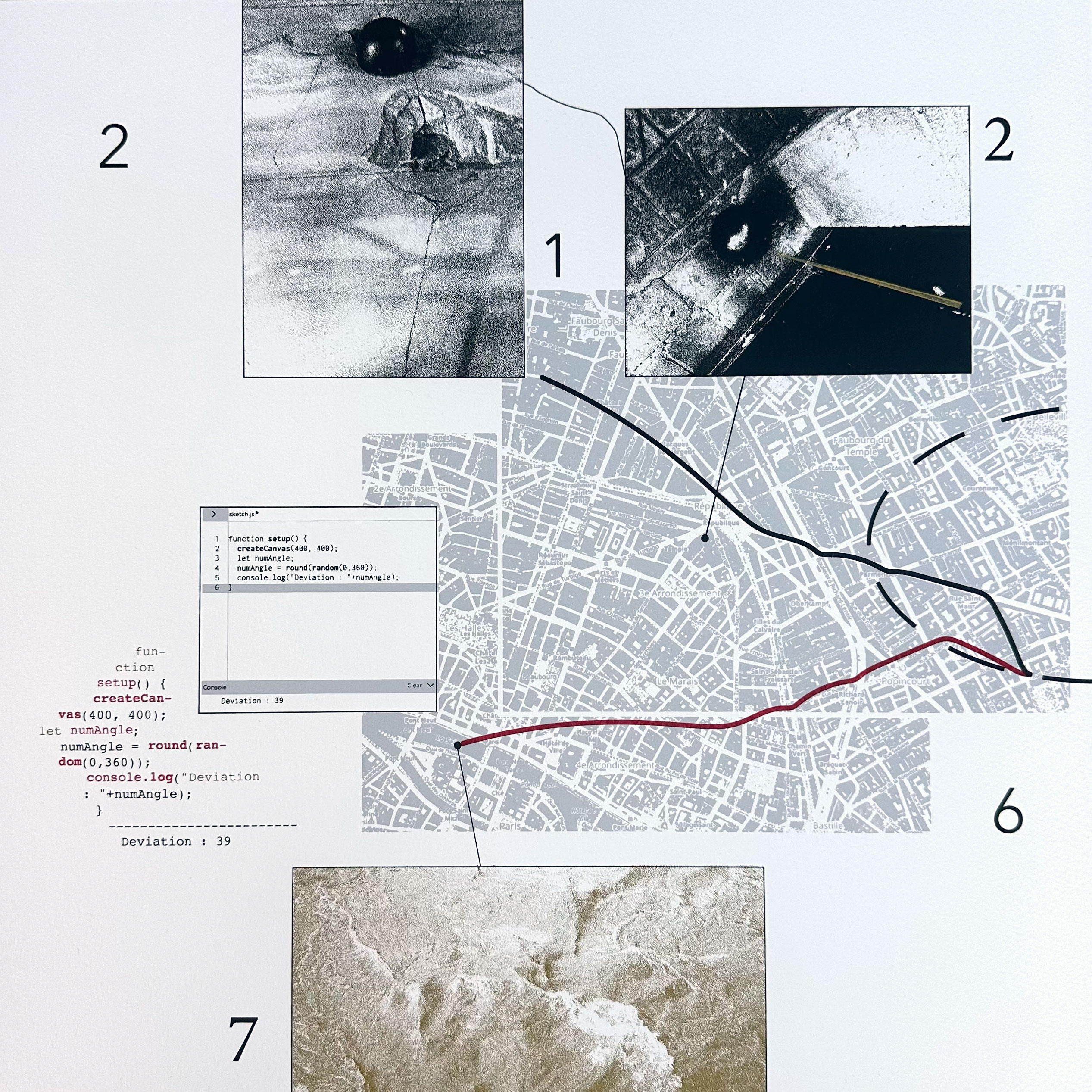 How to work together est une collaboration entre Tomek Jarolim, Isabella Kohlhuber et l’Atelier Vis-à-Vis. En utilisant leur propre vocabulaire artistique comme outil de communication, les artistes ont développé un dialogue radicalement visuel. Par un ensemble d’actions, ils ont déconstruit et recomposé les images — s’appuyant sur leur structure ou leurs similarités — afin de développer un processus de création dont l’objet est la création elle-même. En enregistrant chaque étape dans un protocole, l’image globale obtenue est progressivement devenue une cartographie de sa propre élaboration.