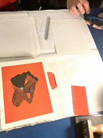 La série Manipulations est un ensemble d’estampes proposant une mise en abîme de la chose photographique. Manipulations met en évidence les gestes des mains présents dans les modes d’emploi des appareils photographiques. La soustraction de la machine, par effacement, laisse place à une chorégraphie gestuelle. Ici, il n’y a pas d’acte photographique, mais une suite d’illustrations de mouvements qui précèdent la prise de vue, un prélude à la fabrication de l’image, qui nous situe dans la temporalité de l’apprentissage. Fantomatique, le sujet n’est que la projection plausible de notre imagination, voyant un appareil photographique qui n’est plus. Selon l’artiste, parler de photographie c’est aussi parler de technique et donc de l’instrument qui permet de reproduire ce que l’on voit, de saisir le monde dans un temps infime. Dans Manipulations, Driss Aroussi sonde le photographique par un regard préalable à la magie de l’image.